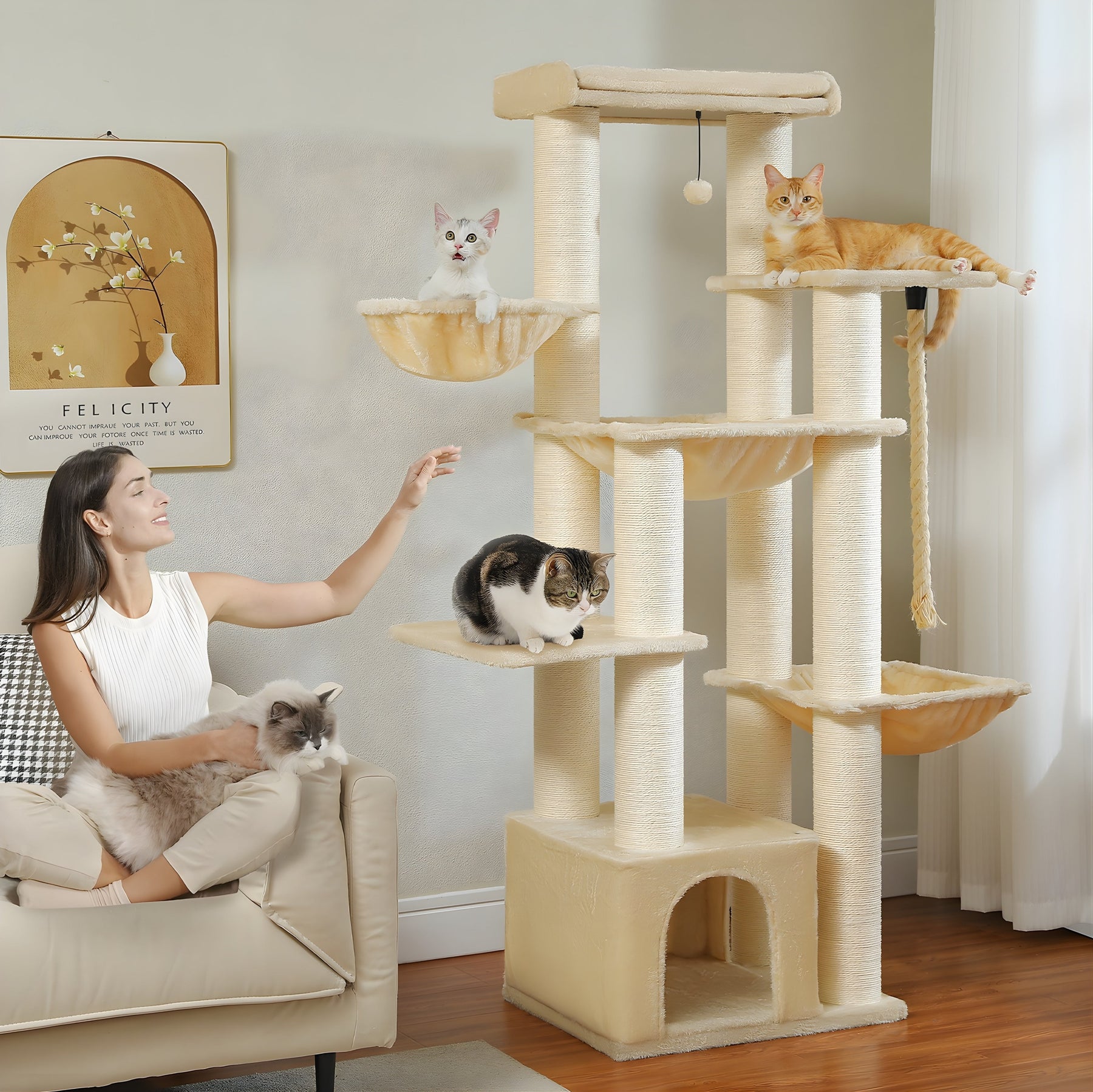 What's Included: 1× Koven Kumo Large Cat Tower (choice of Beige or Charcoal Gray), 1× Oversized Hammock, Hardware Kit, Assembly Instructions